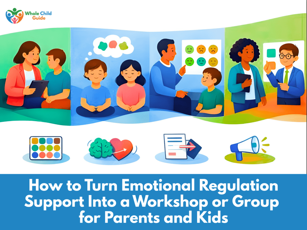 Emotional regulation is the ability to manage and respond to emotional experiences in healthy, adaptive ways. It involves recognizing emotions, understanding what triggers them, modulating their intensity, and choosing appropriate responses rather than reacting impulsively. This foundational skill affects every aspect of a child’s life: relationships, learning, behavior, mental health, and overall wellbeing. When children can regulate their emotions, they can navigate disappointments, handle frustration, recover from setbacks, and maintain relationships even when things get difficult. Here are some suggestions to learn how to turn emotional regulation support into a workshop or sessions for parents and kids.